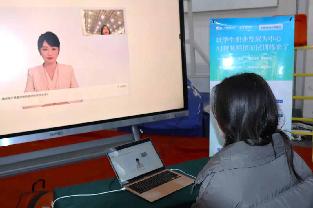 此次双选会现场还特别设置了AI面试区与AI简历诊断区,毕业生通过智能设备现场体验AI辅助面试技巧提升与简历优化,体现了鞍山师范学院“智能+就业”指导服务的新探索与实践成效。