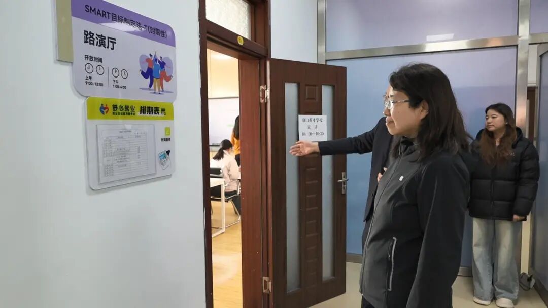 此外,活动期间,与会领导参观了鞍山师范学院近期获批的辽宁省首批“舒心就业”就业创业指导服务站。该服务站经省人社厅评审认定,于今年1月成功入选。学校高度重视服务站建设,特批独立场地,设置了多功能大厅、路演厅、个体咨询面试间、个体辅导室及AI互动区等功能空间,集成日常招聘、政策宣讲、就业创业技能培训、重点群体帮扶、权益维护等一站式服务功能。