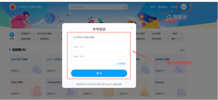 如果扫码未出现预约通道,可通过点击任意岗位,预约面试登录,之后步骤一样。
