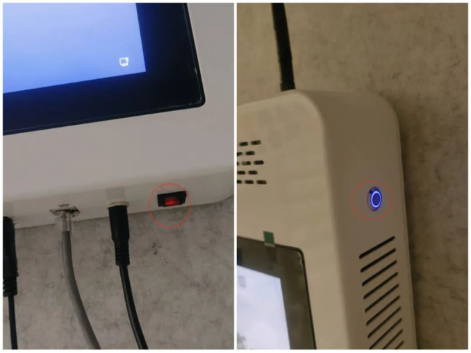 (2)进入舱内,先按下屏幕下方红色按钮,再按下右上方银色按钮,开启设备。