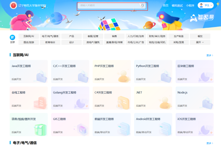 (4)登录完成后,即可搜索或直接选择意向岗位。