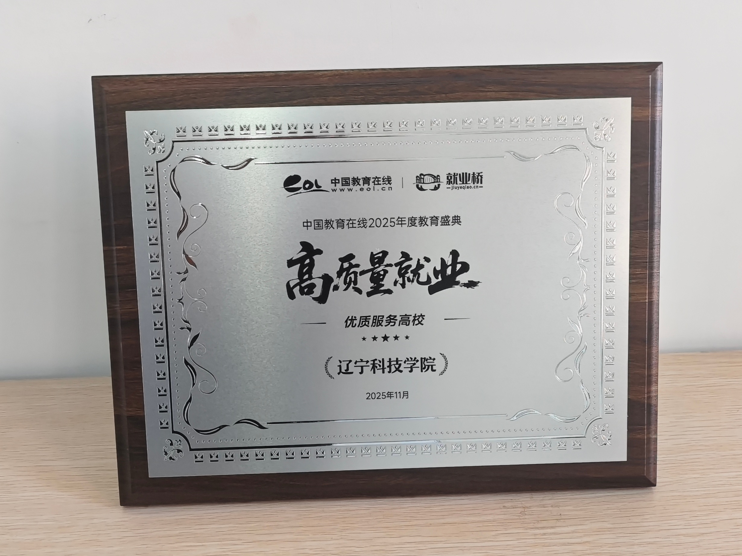 为深入贯彻党中央、国务院关于促进高校毕业生等青年就业创业的决策部署,落实《人力资源社会保障部 教育部 财政部关于做好2025年高校毕业生等青年就业工作的通知》等最新政策精神,挖掘和推广就业工作典型。中国教育在线·就业桥举办了“高质量就业”2025年度教育盛典活动,表彰高校就业工作数智化转型,创新实践的优秀案例,对推动高校就业跨越式发展,汇聚创新动力的榜样单位进行推广。辽宁科技学院应邀参选并荣获“2025年度高质量就业·优质服务高校”荣誉称号。
