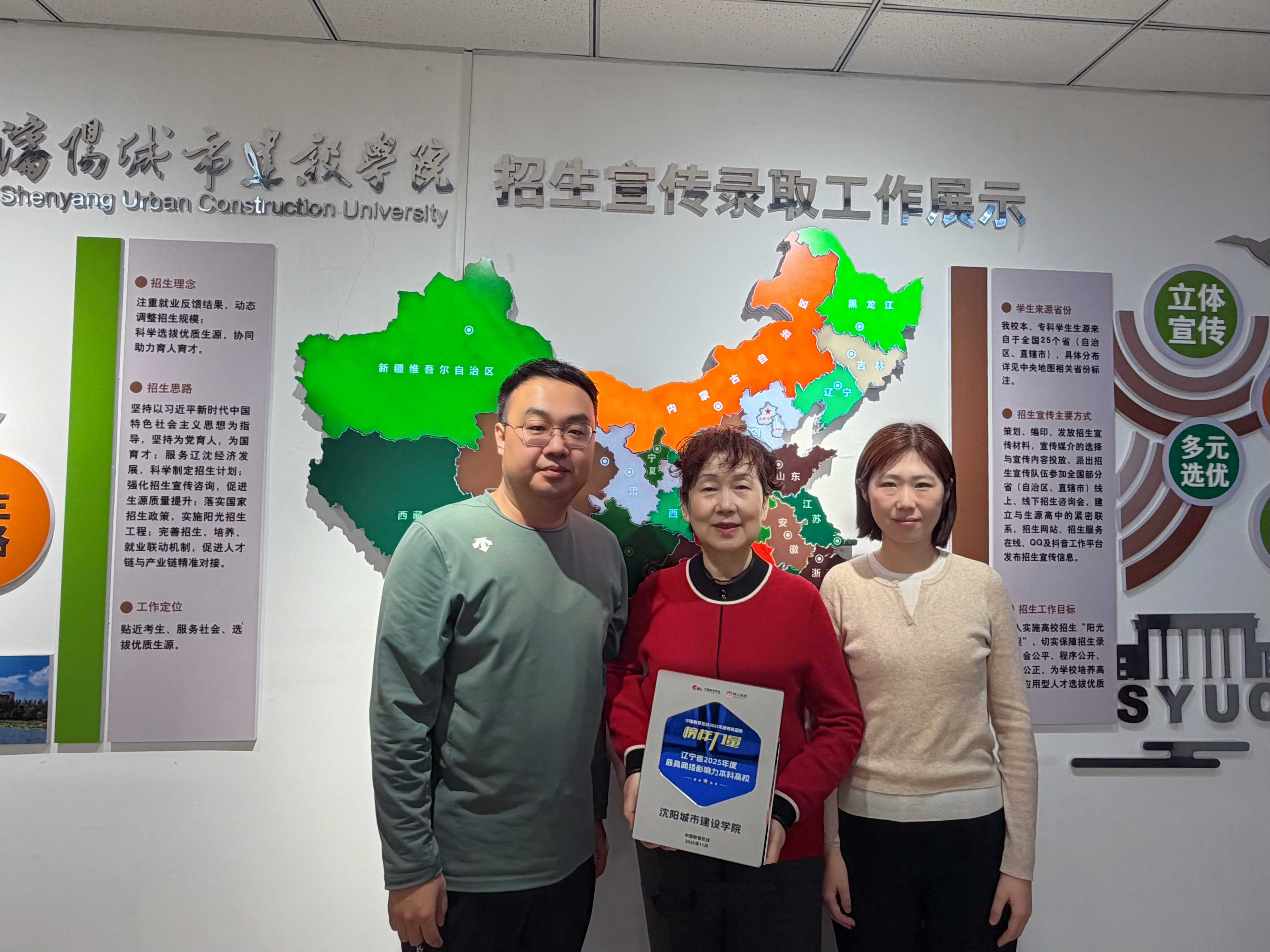 此奖项不仅是对沈阳城市建设学院招生宣传工作的高度肯定,更彰显了沈阳城市建设学院在教育数字传播浪潮中,引领高校网络形象塑造、信息传播新范式的卓越能力与突出贡献。