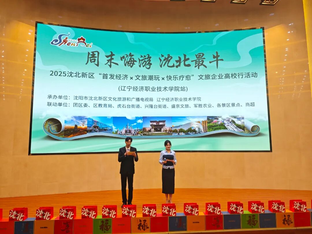 为加深学校与驻沈北新区文旅企业合作交流,服务区域经济高质量发展,10月29日,学校携手沈北新区文化旅游和广播电视局联合举办“周末嗨游 沈北最牛”2025沈北新区“首发经济×文旅潮玩×快乐疗愈”高校行活动。党委常委、副校长李海雄,沈北新区副区长夏玮,沈北新区文旅局相关领导,旅游与康养学院师生代表,受邀企业代表等三百余人参加活动。