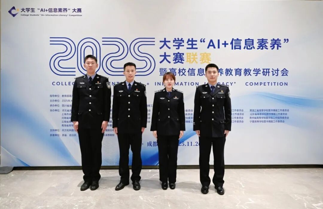 11月26日至28日,2025年大学生“AI+信息素养”大赛联赛暨高校信息素养教育教学研讨会在成都举办。在辽宁省省级决赛中,中国刑事警察学院代表队以本科院校组第一名的优异成绩晋级全国联赛。由严梓涵、徐晓阳、孙明哲同学组成的团队,凭借扎实的信息素养、出色的AI应用能力与新颖的展示,荣获全国联赛三等奖及海报最佳人气奖。