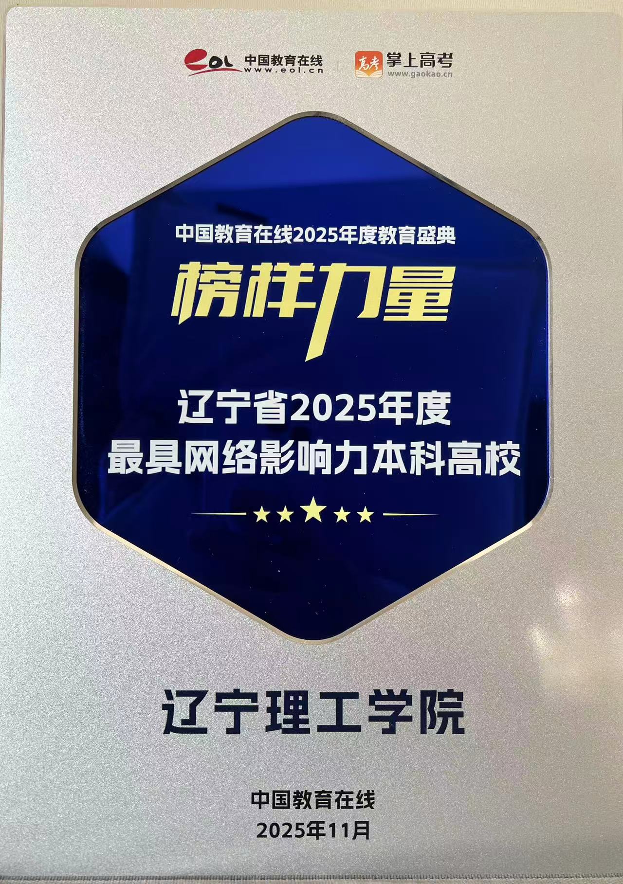 近日,中国教育在线“榜样力量·2025年度教育盛典”优秀案例名单公布。辽宁理工学院凭借极具创新性与前瞻性的招生宣传策略,以及扎实过硬的宣传执行实力,从众多高校中突围,获评“辽宁省2025年度最具网络影响力本科高校”荣誉称号。