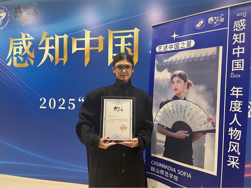 鞍山师范学院俄罗斯籍硕士研究生、中国政府奖学金获得者苏菲(CHUMAKOVA SOFIA)荣获2025“感知中国”年度人物“艺述中国之星”称号