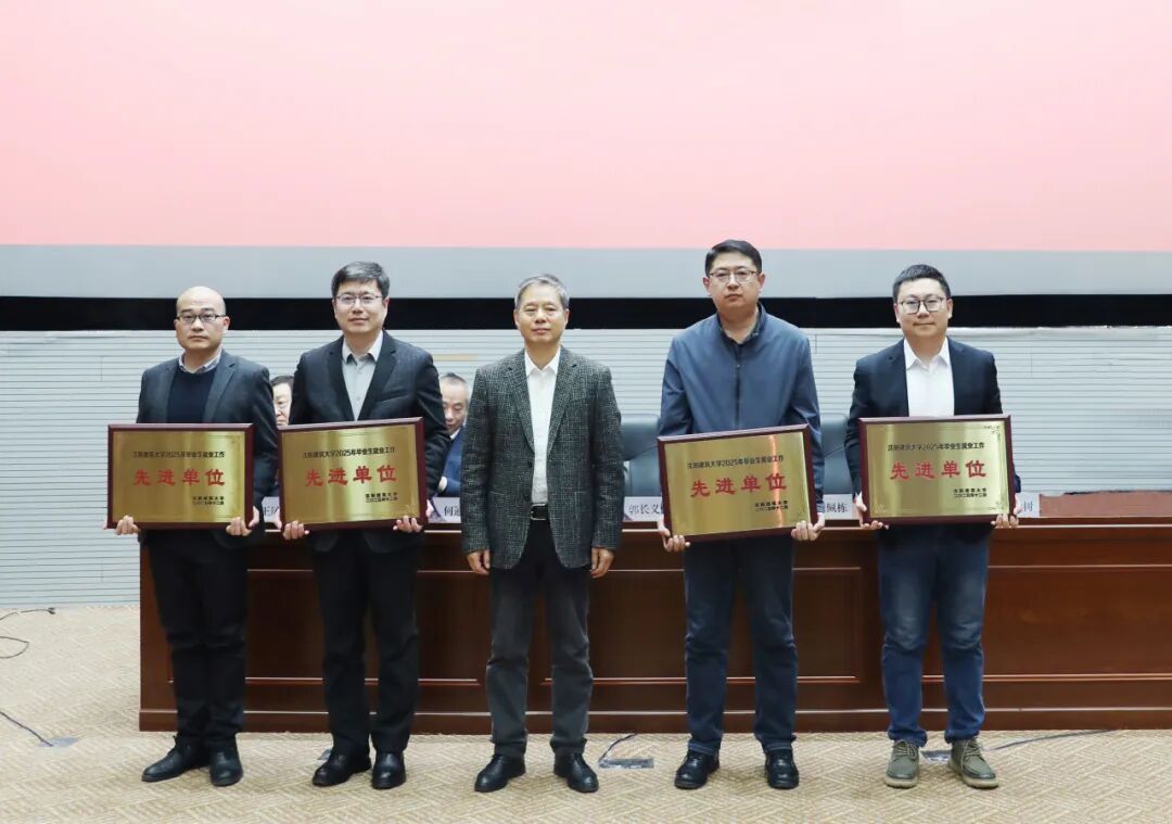 会上,校领导分别为获得“就业工作先进单位”“就业工作先进个人”“访企拓岗专项行动先进单位和个人”“大学生职业规划大赛优秀指导教师”代表颁发了奖牌和证书。