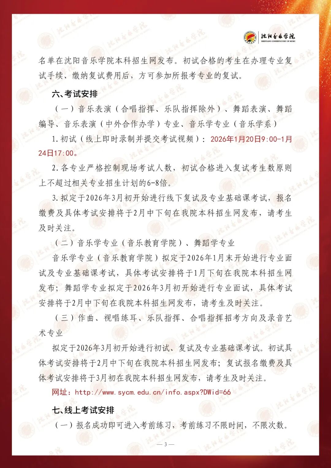 2026年沈阳音乐学院本科招生专业考试考生须知