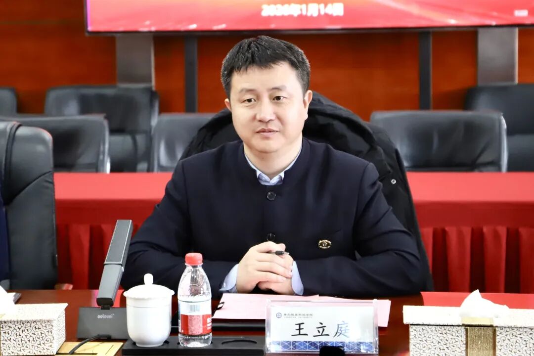 青岛恒星科技学院党委副书记、副校长王立庭出席活动并致欢迎词,对辽宁师范大学海华学院考察团一行的到来表示热烈欢迎。致辞中,他系统阐述了学校的发展定位与办学特色,分享了该校在产教一体化建设中的宝贵经验。他强调,两校在学科布局、学生管理等方面契合度较高,愿以此次互访为契机,深化资源共享、经验互鉴与项目合作,促成更多务实成果落地。