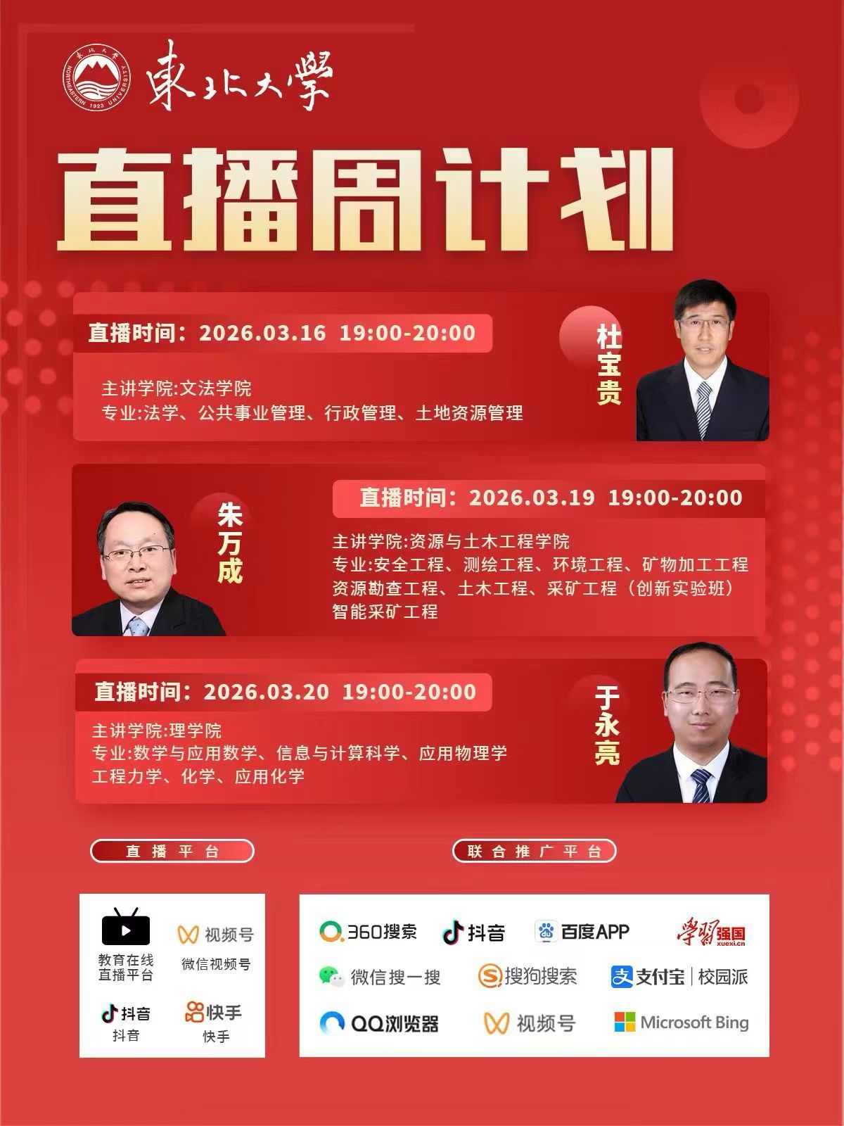 名师领航·洞见未来 | 东北大学文法、资源土木、理学院三大院系直播周今日开启