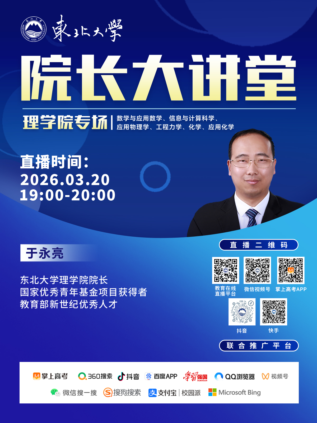 直播预告 | 东北大学院长大讲堂-理学院专场