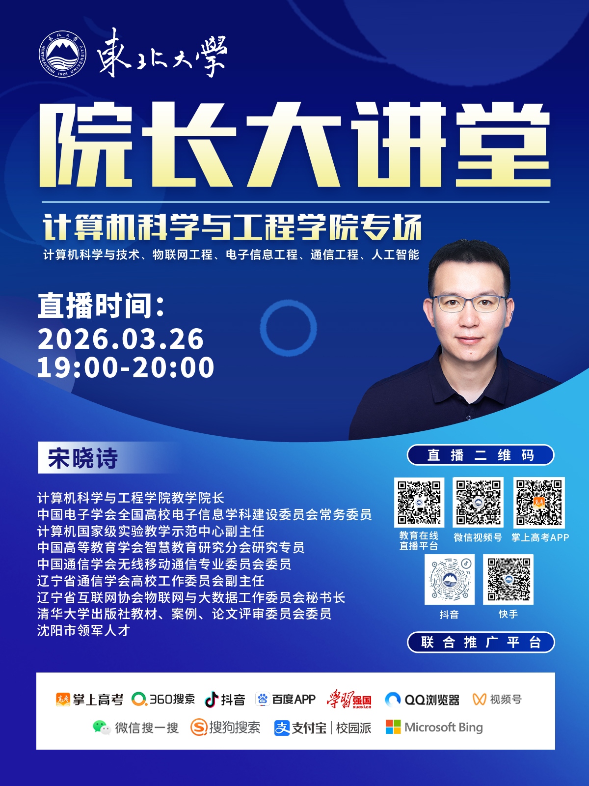 直播预告 | 东北大学院长大讲堂-计算机科学与工程学院专场