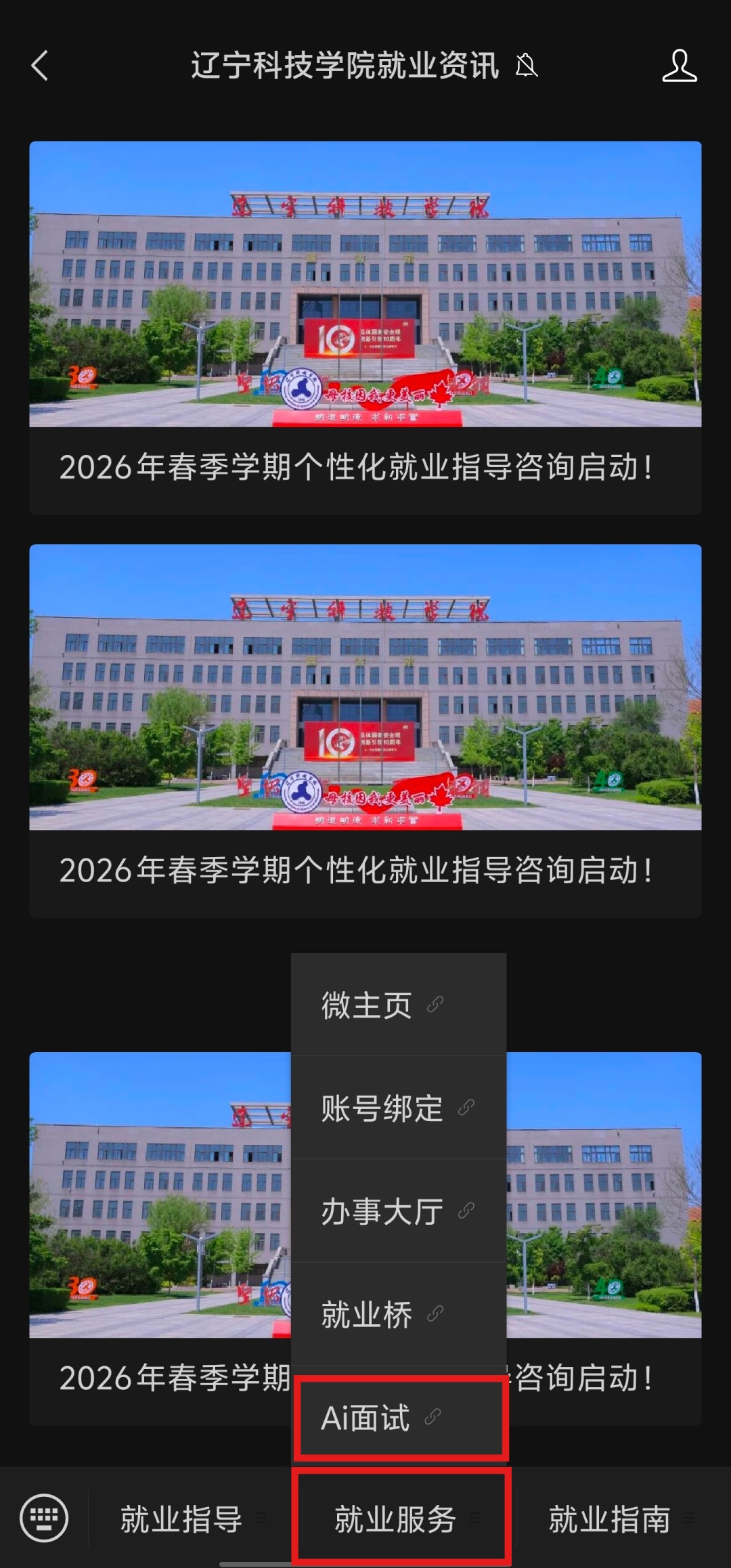 登录端口三:微信公众号→【辽宁科技学院就业咨讯】→AI面试