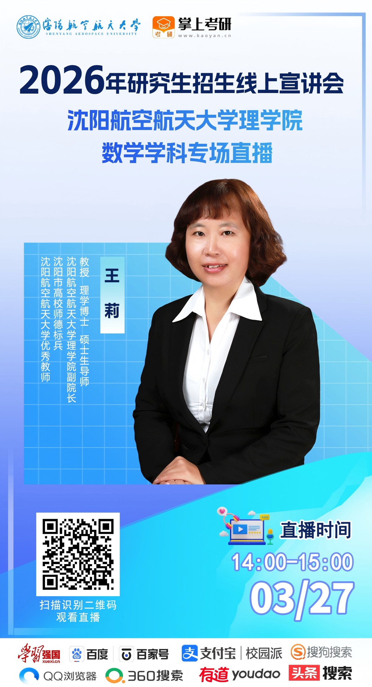 直播预告|沈阳航空航天大学理学院数学学科2026年研究生招生宣讲会即将拉开帷幕!