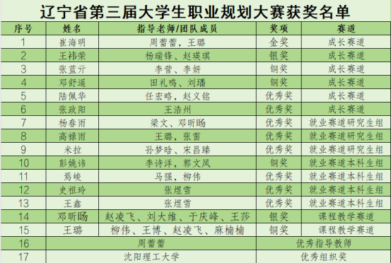 1金2银3铜!沈阳理工大学师生在辽宁省第三届大学生职业规划大赛中创佳绩!