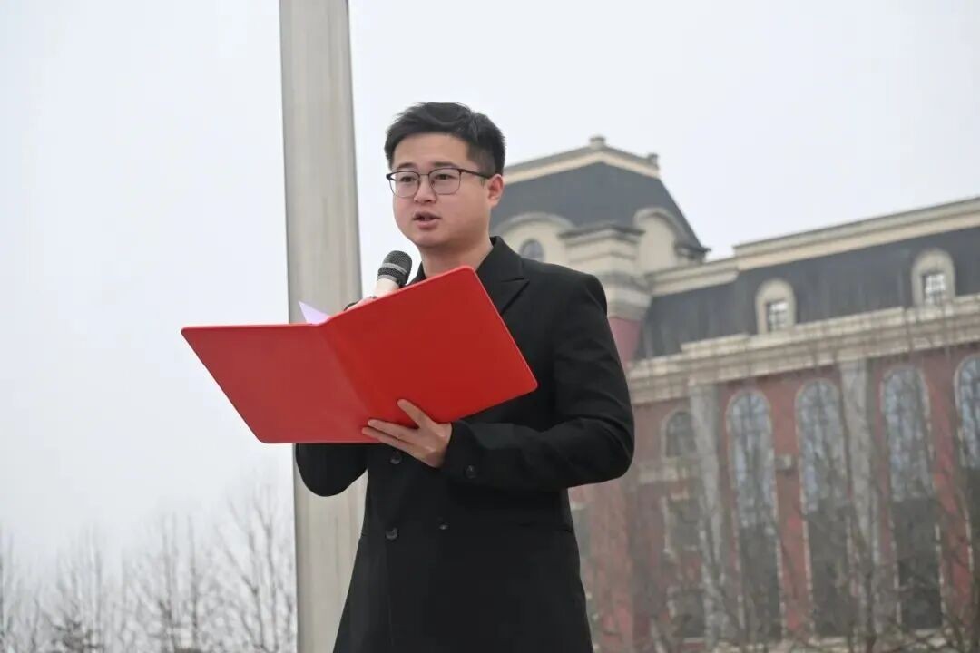 计算机科学与工程学院赵天艺老师作为教师代表讲话,对学生们提出殷切期望:做有志青年,将个人理想融入国家发展大局,在民族复兴征程中找准人生定位;做有德青年,兼顾“有字之书”与“无字之书”,让向上向善、明德修身成为青春自觉;做有为青年,主动走出舒适区、敢闯无人区、勇当开拓者,像螺丝钉一样在岗位上发光发热。