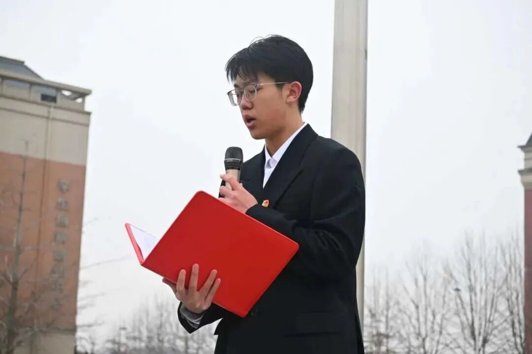 仪式上,人文与传播学院2024级网络与新媒体专业8班臧子淇作为学生代表发言。他结合自身学习感悟,向全体同学发出倡议,号召大家以榜样为灯,传承雷锋精神,在日常学习生活中主动奉献、锤炼过硬本领、积极服务社会,将家国情怀融入点滴行动,以奋进之姿书写新时代青年的青春答卷。