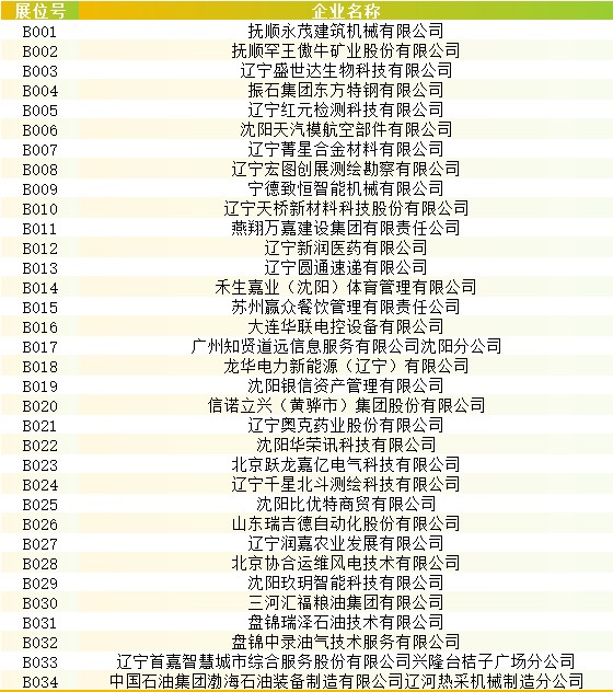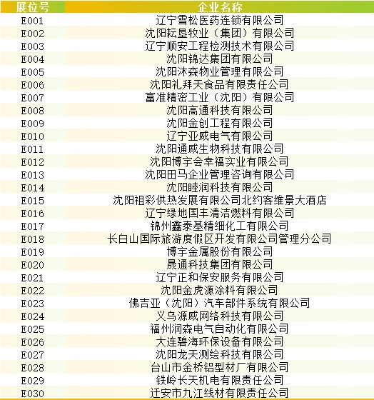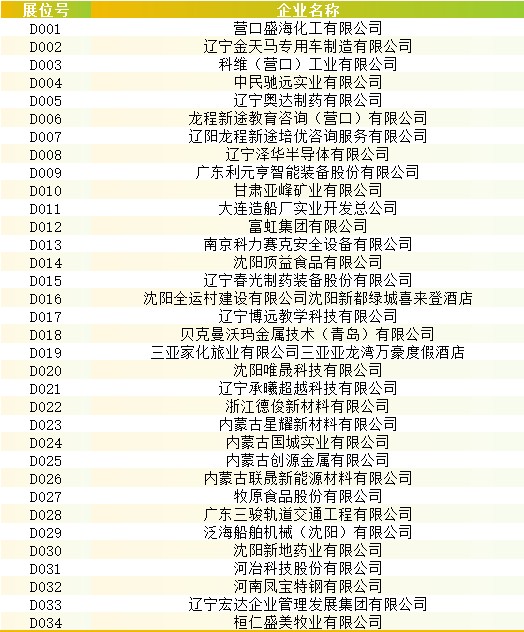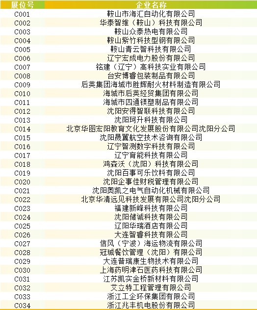 参会企业名录及展位信息