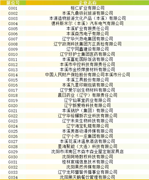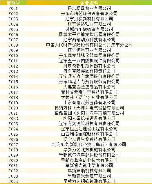 参会企业名单及展位号