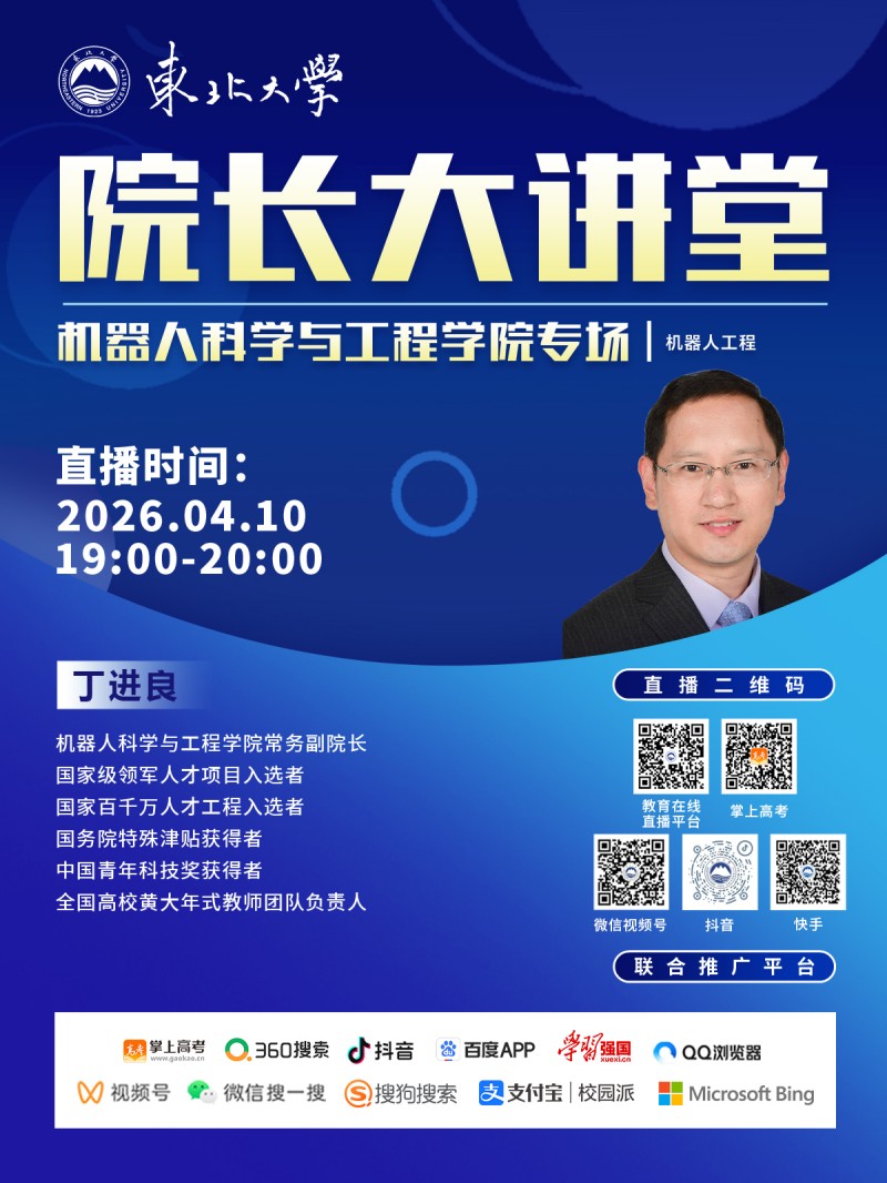 直播预告 | 东北大学院长大讲堂-机器人科学与工程学院专场