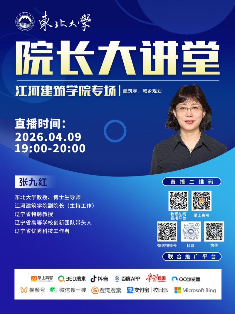 直播预告 | 东北大学院长大讲堂-江河建筑学院专场