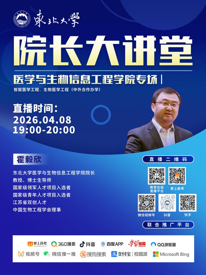 直播预告 | 东北大学院长大讲堂-医学与生物信息工程学院专场