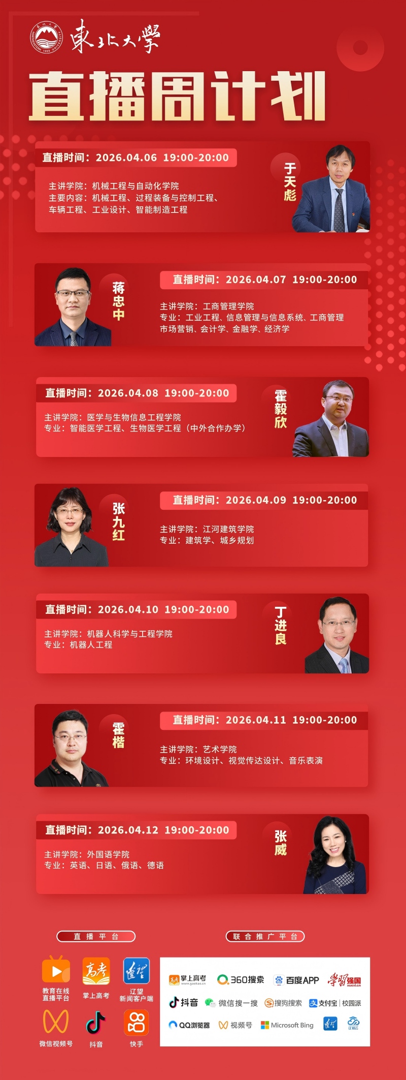 名师领航·洞见未来 | 东北大学机械工程与自动化学院、工商管理学院、医学与生物信息工程学院、江河建筑学院、机器人科学与工程学院、艺术学院、外国语学院七大院系直播周开启
