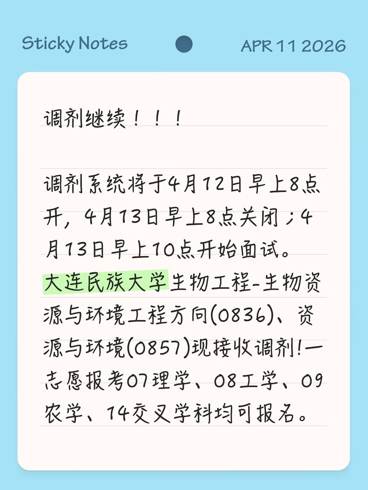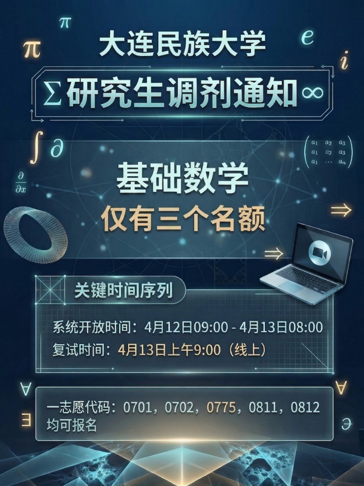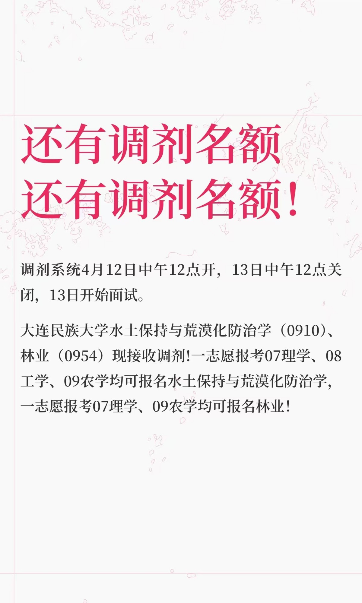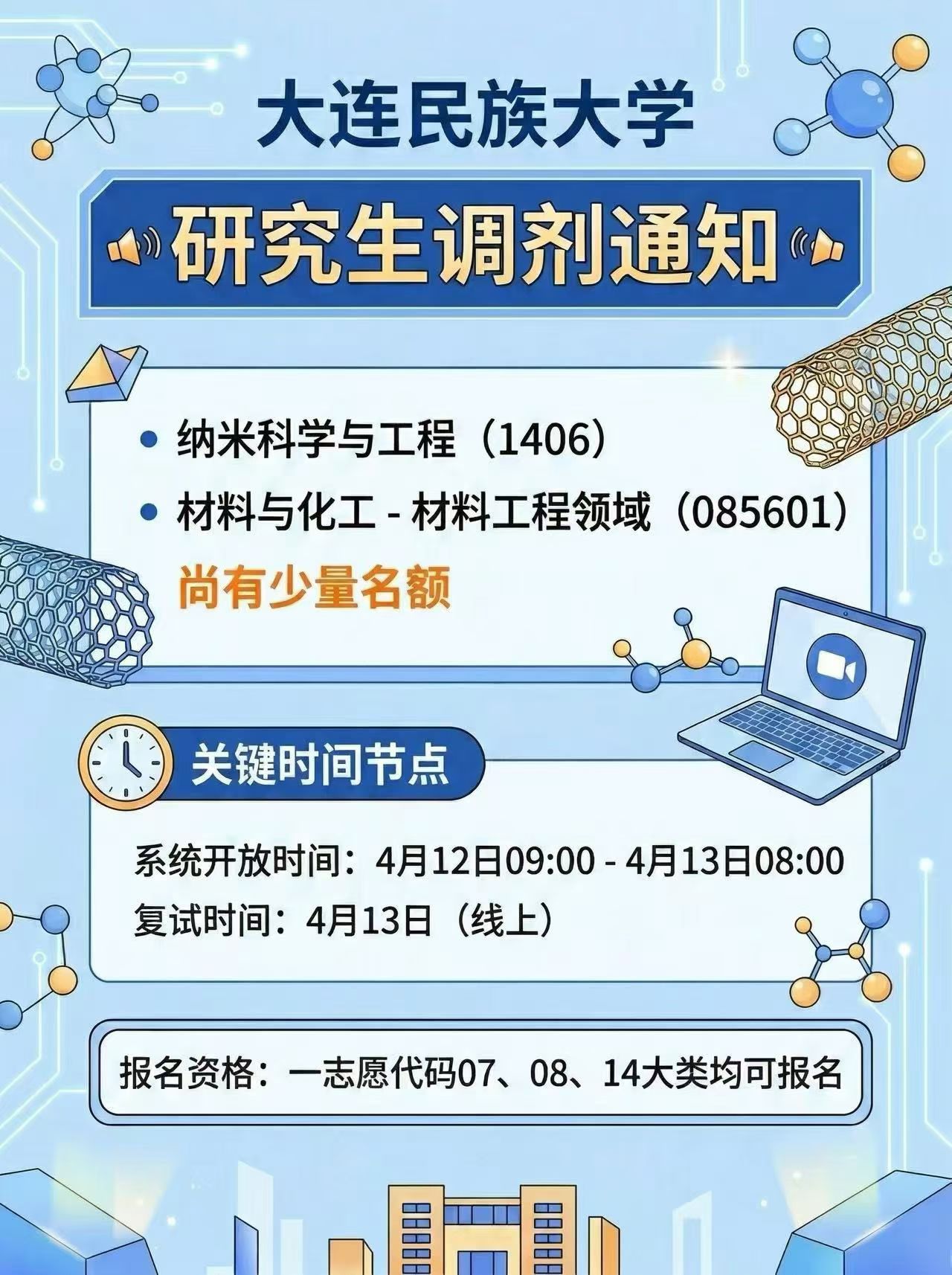 大连民族大学研究生研招调剂通知