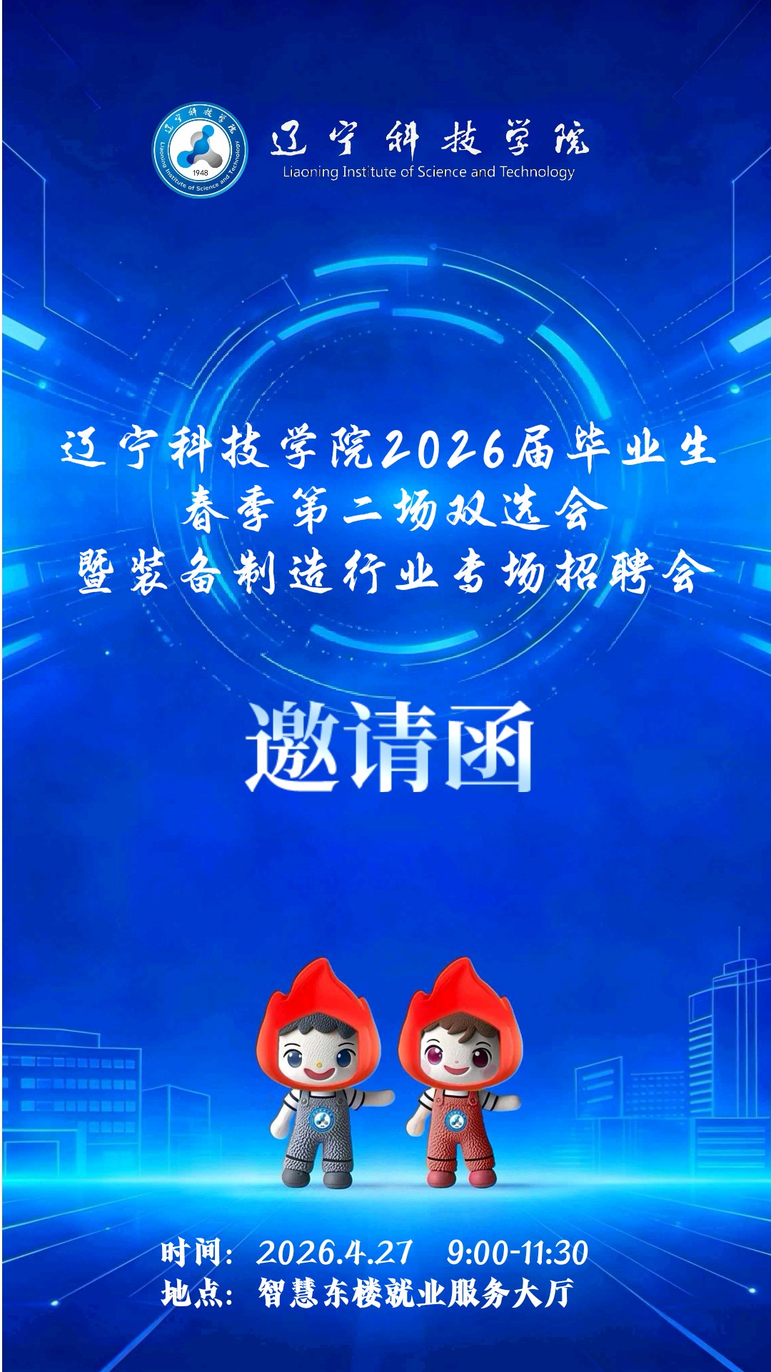“百校千企”人才对接计划 | 辽宁科技学院2026届毕业生春季第二场双选会暨装备制造行业专场招聘会邀请函
