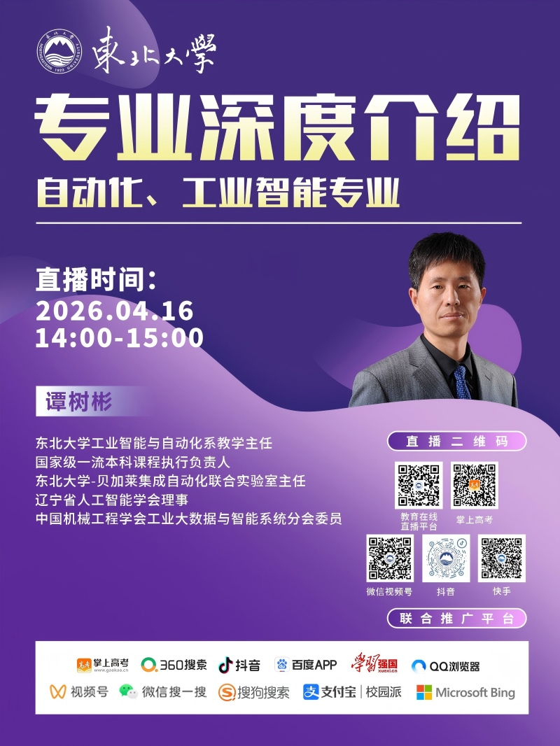 直播预告 | 东北大学专业深度介绍-自动化、工业智能专业专场