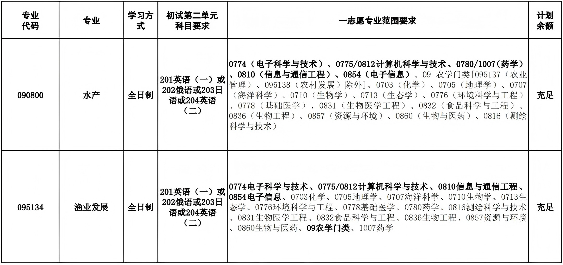 大连海洋大学2026年全国硕士研究生招生调剂公告