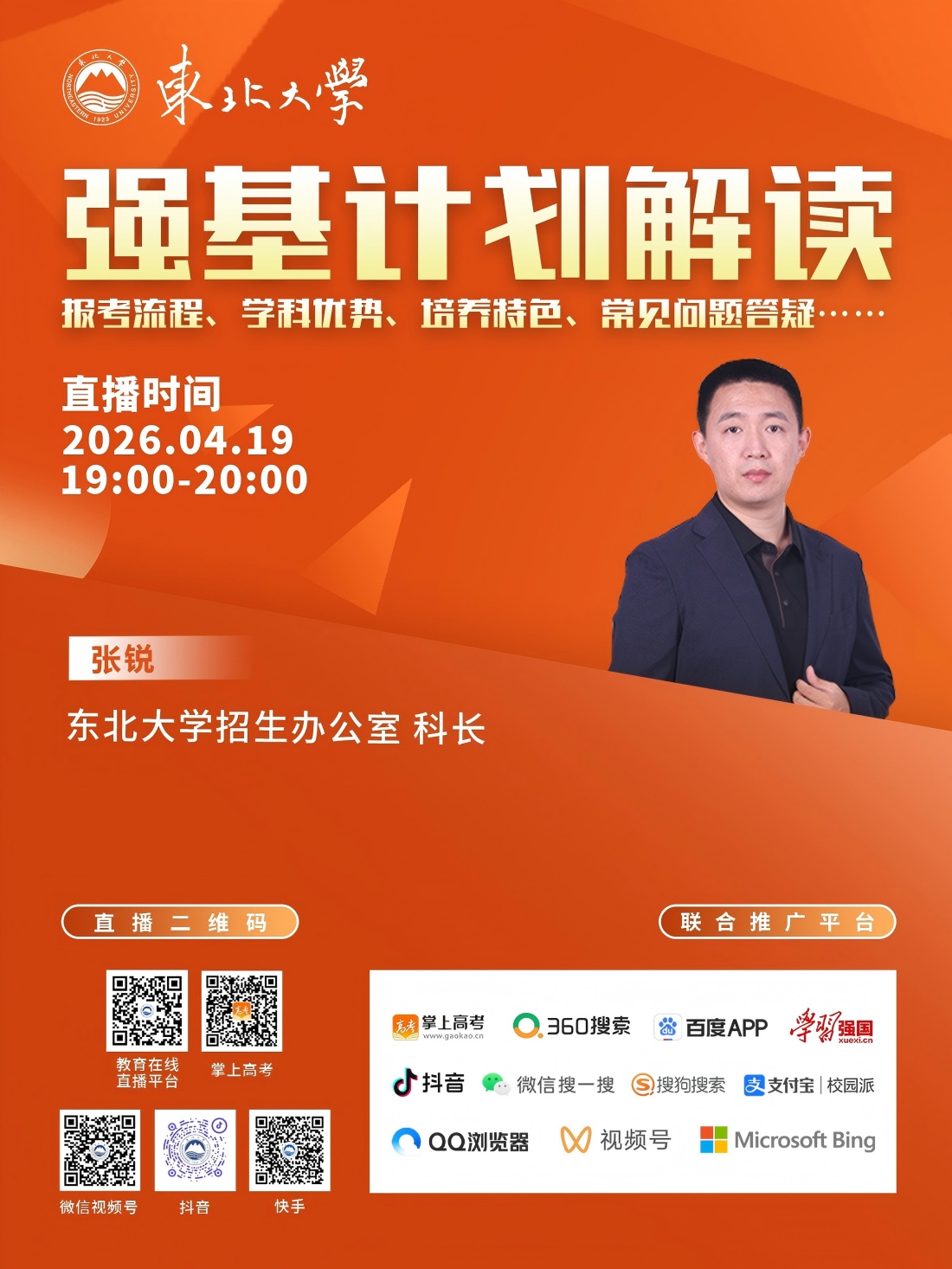 直播预告 | 4月19日,东北大学强基计划政策解读直播宣讲会即将开启!