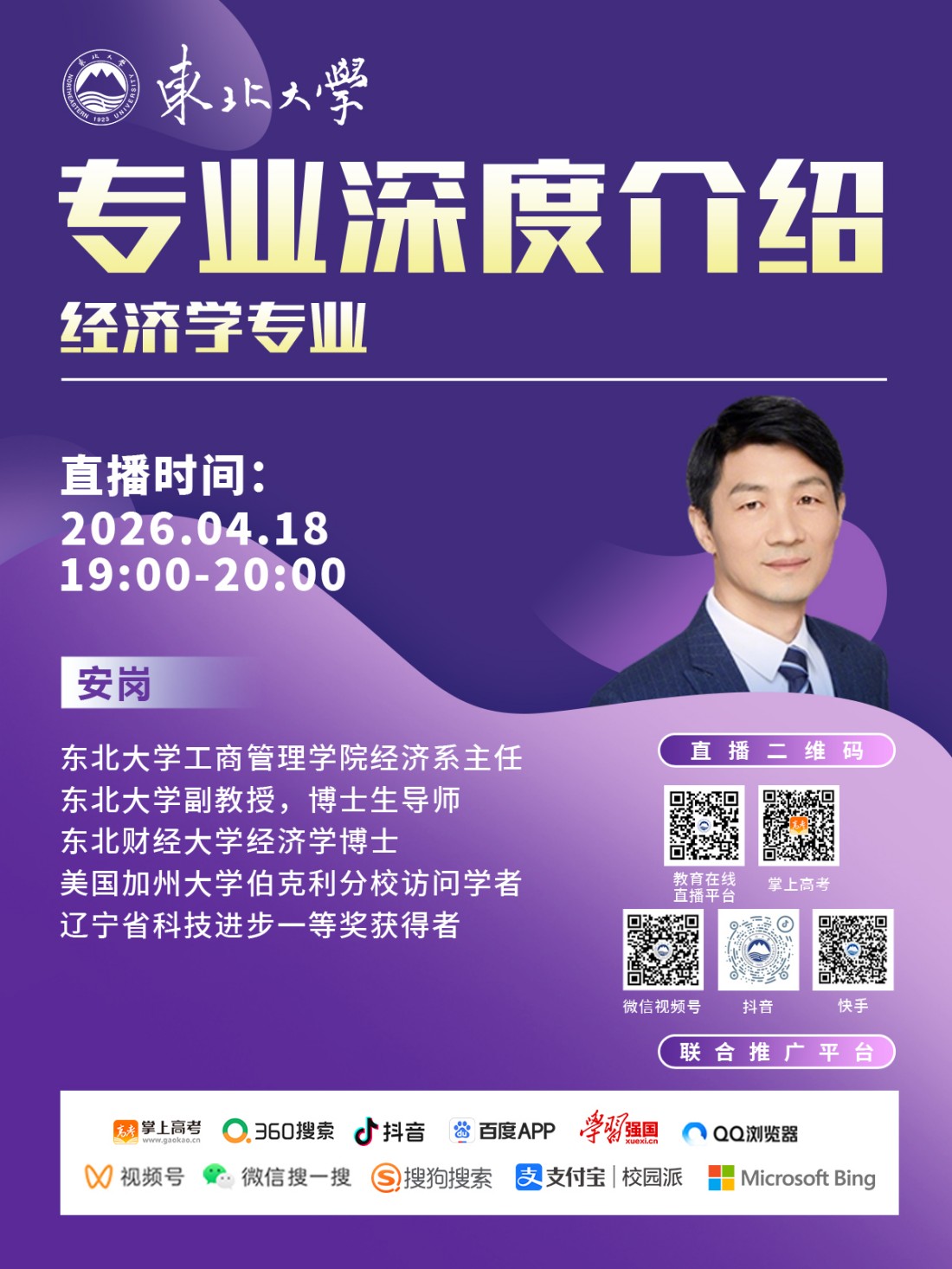 直播预告 | 东北大学专业深度介绍-经济学专业专场