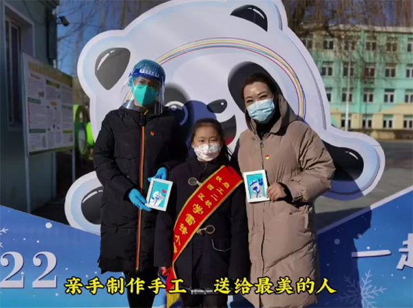 近日,在沈阳市铁西区启工二校核酸检测临时检测点出现温暖的一幕,启工二校少先队员黄子萱向此刻奋战在核酸检测第一线的老师、家长志愿者们敬献礼物,向他们表达诚挚感谢和崇高敬意之情。