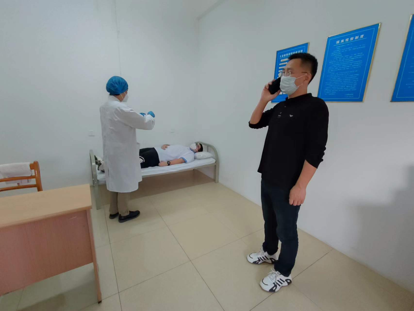 演练中,按照预案的 “以人为本、群防群控、统一领导、分级负责、快速反应、协同应对”的原则,相关人员各就其位,听从指挥,一一演示了来自高二一班的学生,从模拟出现恶心、呕吐、腹痛等症状,到班主任的现场应急处置、校医的诊判、按层级上报,同时拨打120,请求派救护车到校救援以及校长安排立即模拟启动学校食物中毒事件应急处置预案、学校舆情管控的场景。