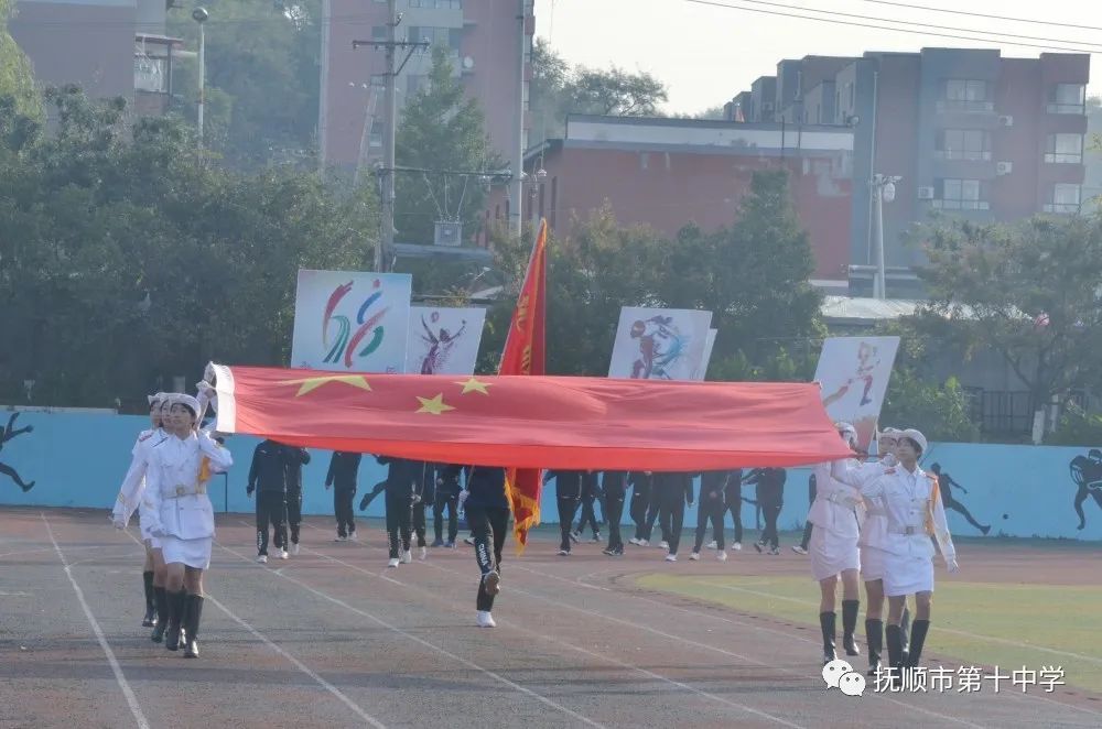 雄壮的《运动员进行曲》在抚顺市第十中学上空响彻云霄,全校方队喊着嘹亮的口号,迈着矫健整齐的步伐向着主席台前进,接受领导的检阅,展现了运动的活力和高昂的热情,更展现了我们现代中学生朝气蓬勃、文明向上的风采。