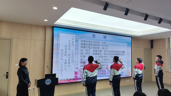 为激发学生的竞争意识和拼搏精神,促使初三学生以良好的心态投入到中考备考复习中去,3月16日下午,学院附中在301多媒体教室隆重举行了2023年决战中考百日誓师大会。大会由吕萍老师主持,叶辉副校长、张瑾主任、全校师生及初三学生家长出席了本次大会。