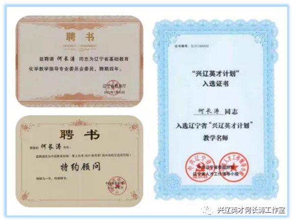 教育部“十四五”国培计划专家,全国智库英才名师工作室联盟理事长,辽宁省基础教育化学教学指委会委员,辽宁省中小学校长(园长)培训首席专家。全国教科研先进工作者、中国课改优秀教师、全国高中化学骨干教师、辽宁省高层次人才、辽宁省“兴辽英才计划”领军人才教学名师,辽宁省优秀教师、辽宁省五一劳动奖章获得者、辽宁省研究型名师、辽宁省中小学学科带头人、辽宁省中小学骨干教师、人大连市优秀教师、大连市教学名师、大连市“十佳最美人民教师”。
