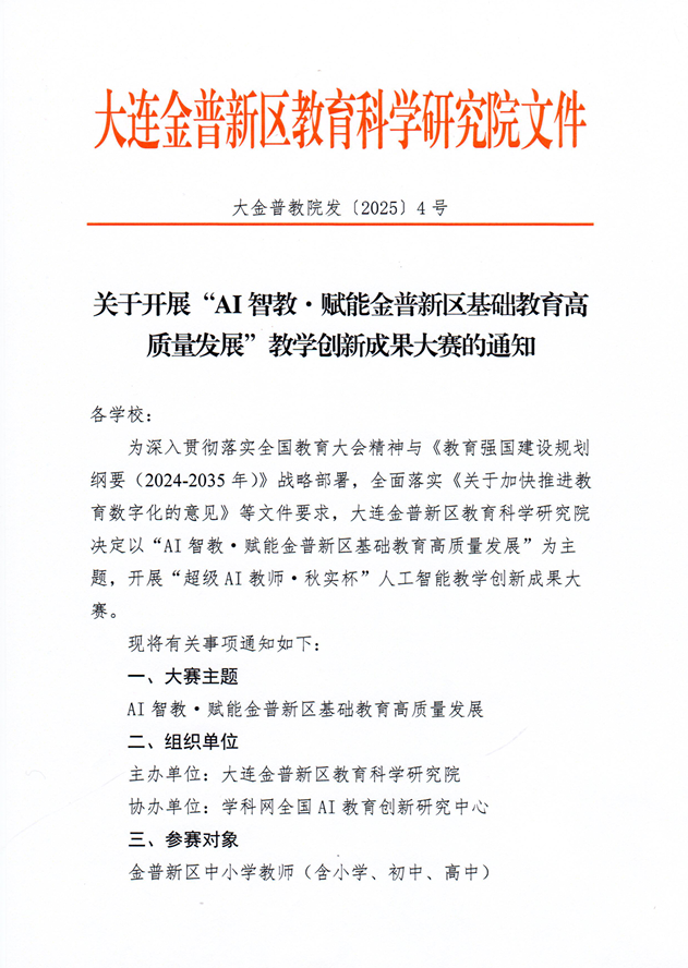 【教师比赛通知】大连金普新区“秋实杯”AI创新成果大赛正式开启!