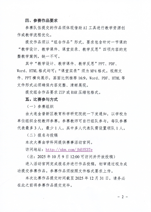 大连金普新区“超级AI教师·秋实杯”人工智能教学创新成果大赛投稿通道在10月9日已正式开启!