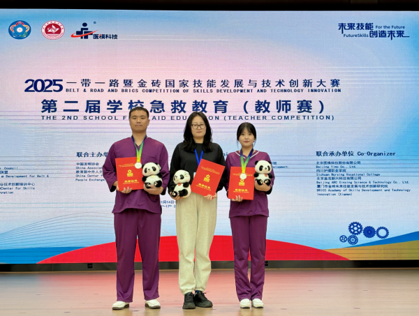 11月15日,2025“一带一路”暨金砖国家技能发展与技术创新大赛第二届学校急救教育(教师赛)赛项在四川护理职业学院成都校区开赛,学院护理系文明、李莫难两位老师凭借扎实的专业功底、出色的团队协作以及娴熟的实操技能,在众多参赛队中脱颖而出,最终成功荣获医卫组银奖,充分展现了新时代职教人精于技艺、追求卓越的工匠精神。护理系教师邱福翠、信玺荣获优秀指导教师,通辽职业学院荣获最佳组织奖。