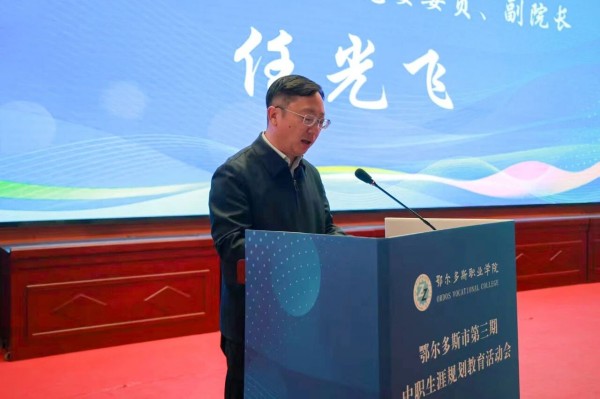任光飞在致辞中说,职业生涯规划是青年学生认识自我、衔接理想与现实的关键桥梁,不仅能帮助学生树立正确的成才观与职业观,更能为其成长成才锚定方向。他向同学们提出四点期望:一是树立“劳动光荣、技能宝贵”的正确观念,点亮职业理想;二是融入家乡建设,将个人职业“小目标”融入家乡产业发展“大蓝图”,实现同频共振;三是借助产教融合契机,接触职业环境、了解技术前沿,夯实成才根基;四是以规划为引领,从学好课程、掌握技能做起,用行动成就未来。