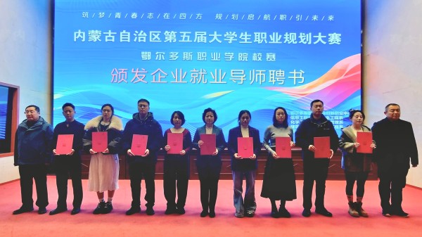 11月28日,鄂尔多斯职业学院举办以“筑梦青春志在四方,规划启航职引未来”为主题的2025年内蒙古第五届大学生职业规划大赛校内选拔赛。本次大赛邀请到上海政法学院教授白茹、内蒙古博研数智博士岳雷、伊泰集团行政副总经理郝云等行业专家与企业代表担任评委,由15家企业组成“企业心选团”进行现场人才对接。学院党委委员、副院长杭刚、任光飞、哈达在现场观摩比赛。