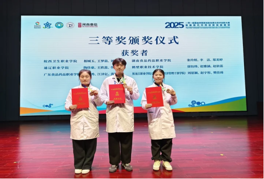11月28-30日,2025“一带一路”暨金砖国家技能发展与技术创新大赛首届现代中药创新技能赛项在亳州职业技术学院举办。赛事聚焦中医药传承与现代技术融合,学院药品食品系学生团队从初赛90余支参赛队伍中成功突围,与其他晋级决赛的60支职业院校代表队齐聚亳州同台竞技。本次赛事设理论考核、AI审方、中药炮制等七大核心模块,全面考验选手的综合能力。面对严苛的赛制要求,药品食品系陶佳豪,王欣蕊,李洋静三位学生凭借扎实的专业基础、娴熟的操作技能,荣获三等奖。
