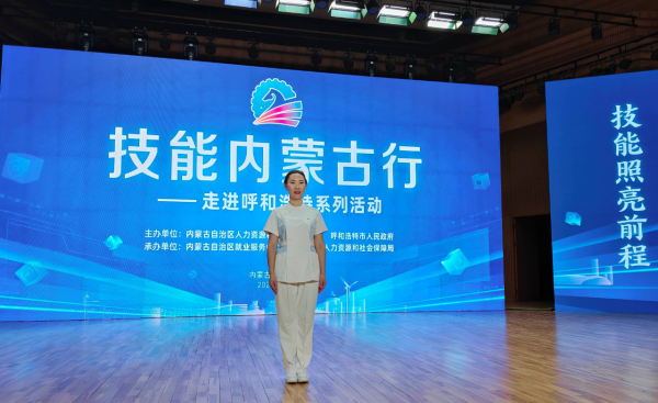 11月24日,由内蒙古自治区人力资源和社会保障厅、呼和浩特市人民政府联合主办的“技能内蒙古行—走进呼和浩特”系列活动在呼和浩特职业技术大学隆重举行。通辽职业学院护理系敖文君老师凭借深厚的专业素养与突出的技能成就,受邀作为技能人才代表登台宣讲。作为自治区技术能手,敖文君老师于2024年8月在内蒙古自治区第二届职业技能大赛养老护理赛项中斩获金牌,2025年9月更代表内蒙古出征中华人民共和国第三届职业技能大赛,勇夺养老护理赛项优胜奖(全国第六名),充分展现了我区养老护理技能人才的顶尖水平与专业风采。