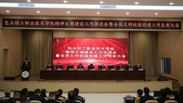 12月9日,学院召开精神文明建设工作推进会暨全国文明校园创建工作表彰大会,会议由学院党委副书记、院长高晓平主持。包头市委常委、宣传部部长王玲,市委宣传部副部长樊宏强,包头市老干部正能量宣讲团负责人(原市政协主席、党组书记)李玉然出席会议。学院领导班子成员、副科级及以上干部,突出贡献集体、个人代表、教师代表、学生代表参加会议。