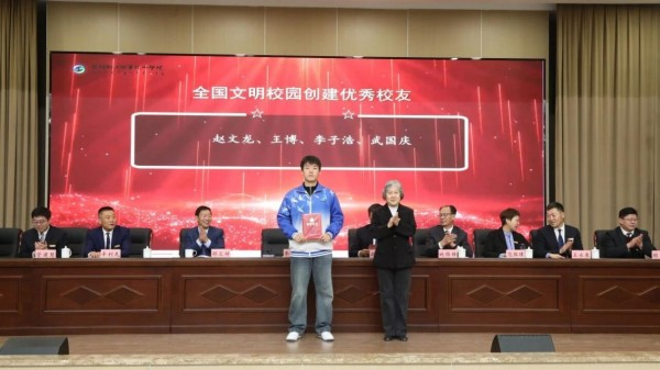 李玉然教授为全国文明校园创建优秀校友颁奖;