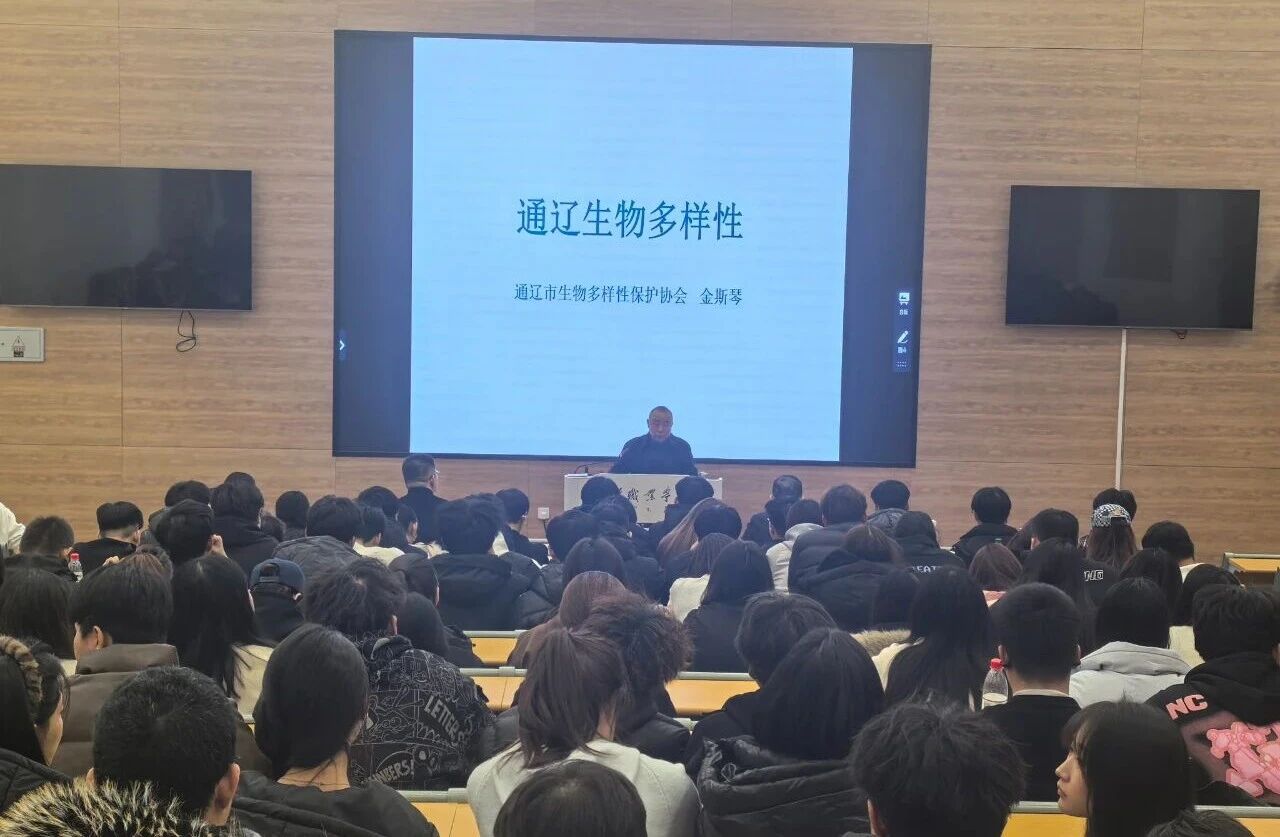 12月10日,通辽职业学院农牧系“犇马思政学堂”第三期如期举行。通辽市生物多样性保护协会野生动物观察员、学院特聘教授金斯琴以《守护生命共同体——保护生物多样性》为题,为200余名师生带来一场“干货满满”的沉浸式讲座。通辽职业学院党委委员、纪委书记张铁龙,学院党委委员、副院长、农牧系党支部书记尹海锋莅临现场,农牧系党支部副书记、主任石丽艳主持讲座。