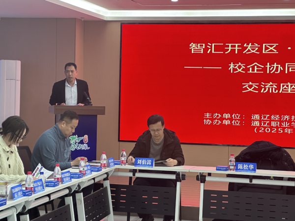 12月11日下午,通辽职业学院党委委员、副院长陈松华、科研处处长佟晓文率学院博士服务团,赴蒙科聚(通辽分中心)开展“智慧开发区 赋能中小微——校企协同创新促发展”交流座谈会。会议由开发区科技局副局长庞英男主持。本次活动不仅是一次深入的校企对话,更是学院推动科研成果走出校园、服务地方产业的关键一步,博士服务团正日益成为连接学院科研力量与企业实际需求的活跃桥梁。
